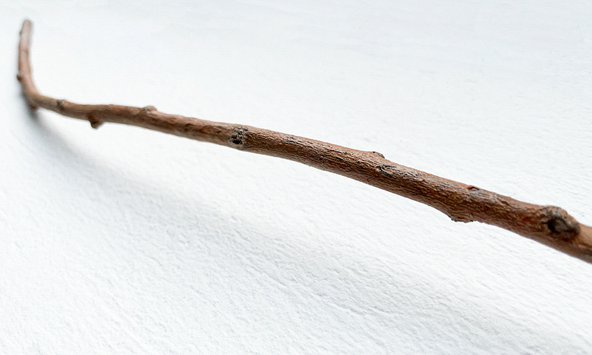 A four-year-old boy living in Basel holds a branch as long as his arm in his left hand against his chin so that he can stroke it with