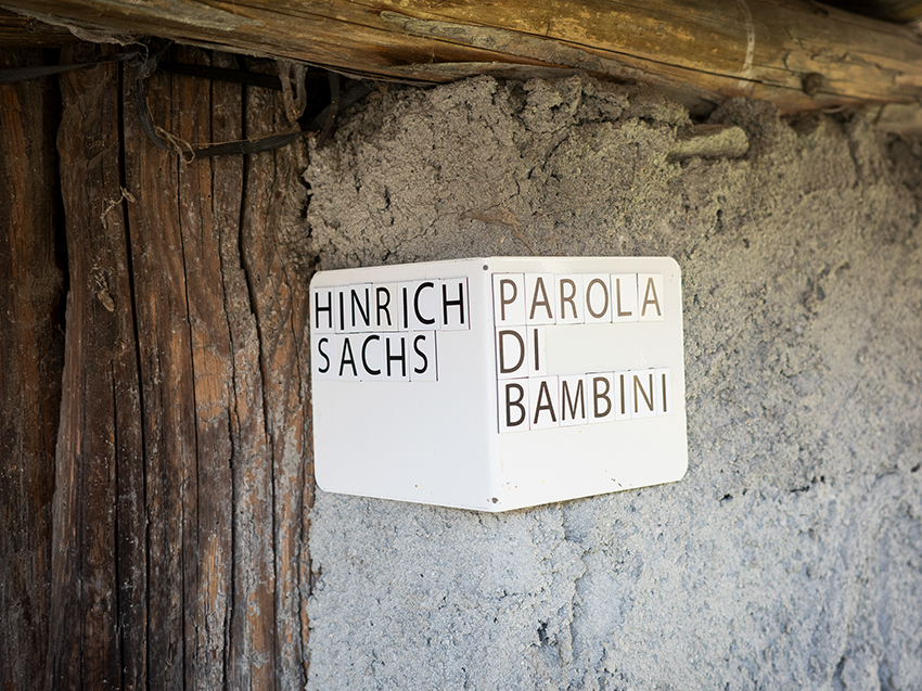 The selection for Parola di bambini [children’s discourse] reflects an ongoing study, with each item being presented in a few sentences, giving context to the respective play, in the given language of the exhibition location, here Italian. Furthermore, an Italian/English brochure was produced to document the group of items – the group of works –, which has grown to 35 since 2012. The research process is based on information from individuals, as well as artworks and children’s books.